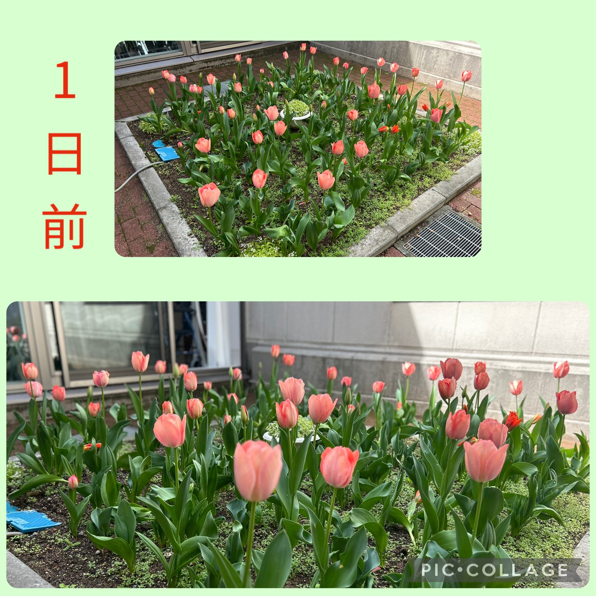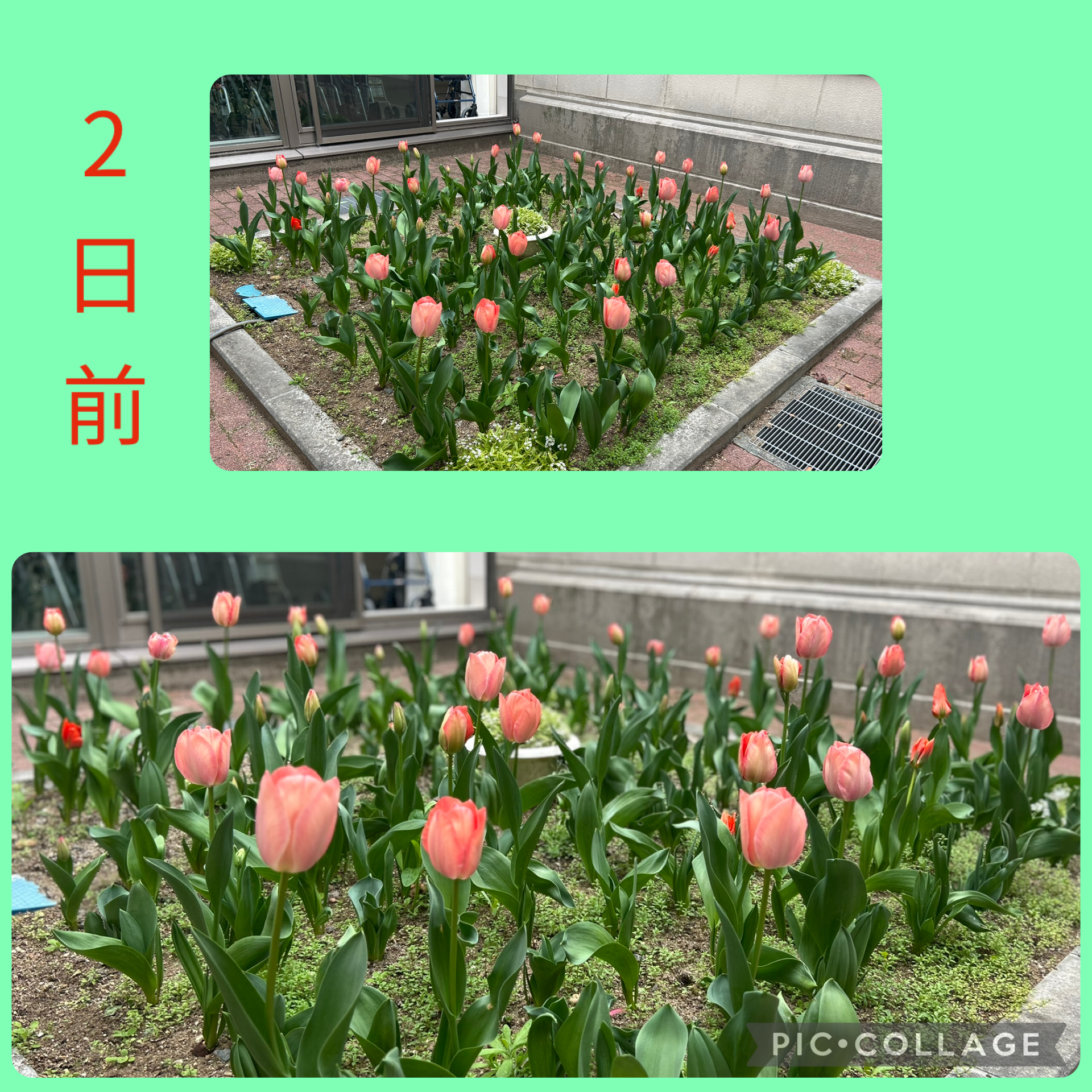 中庭に咲いているチューリップの様子