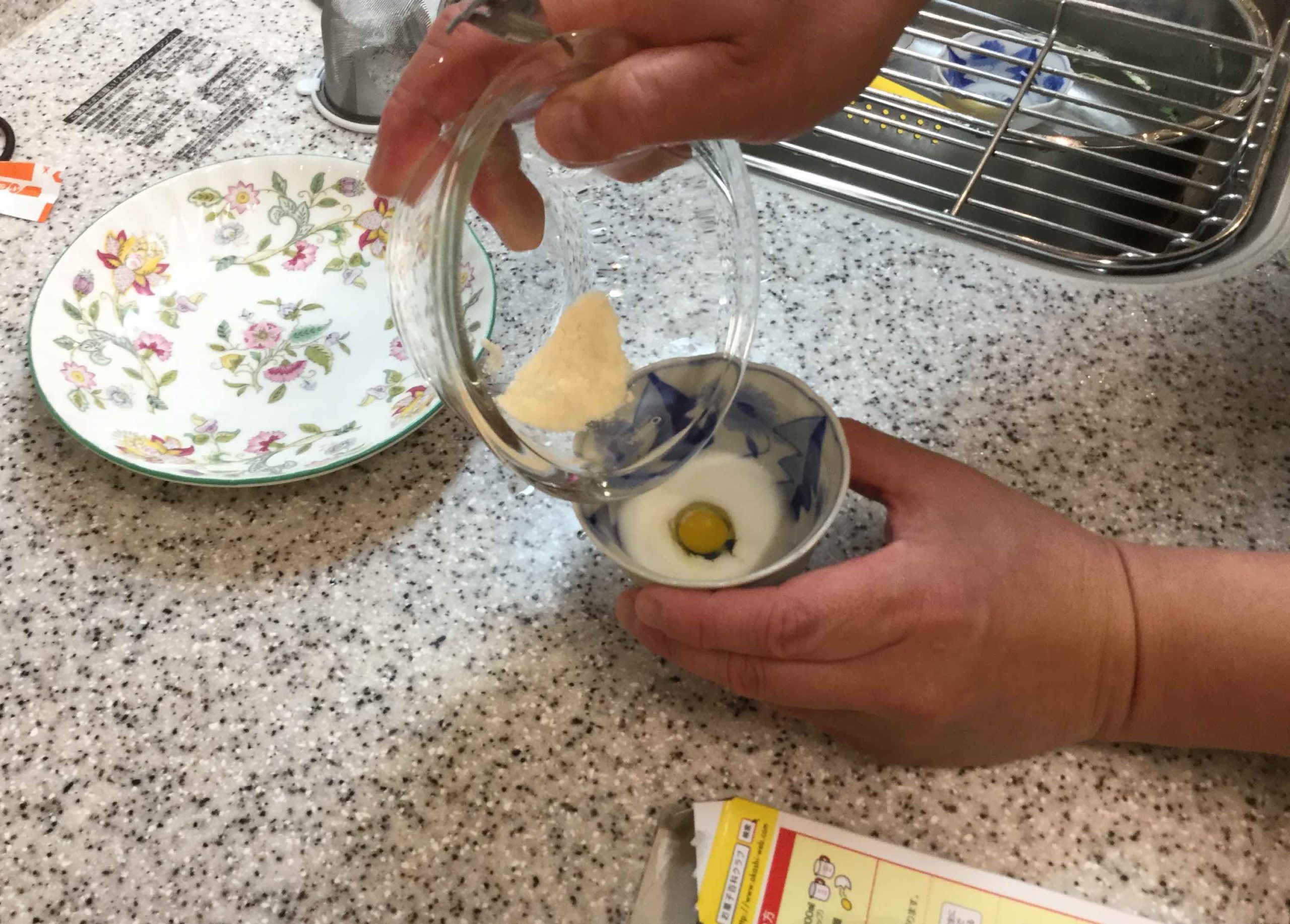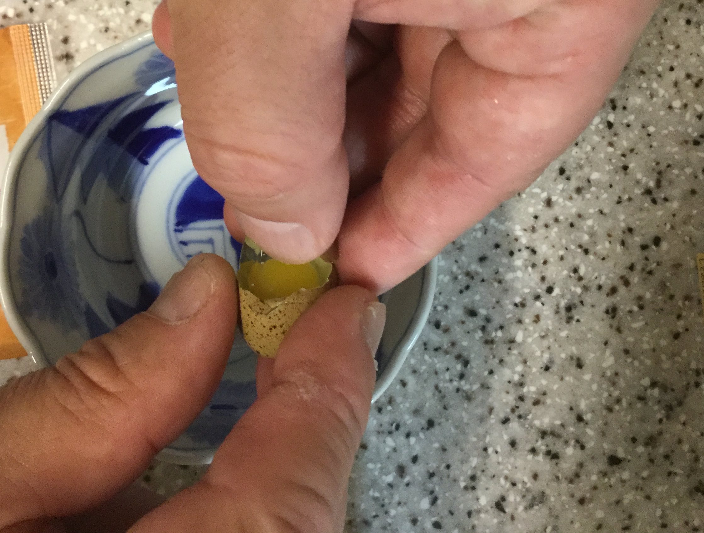 小さい卵🥚👌を丁寧にわる