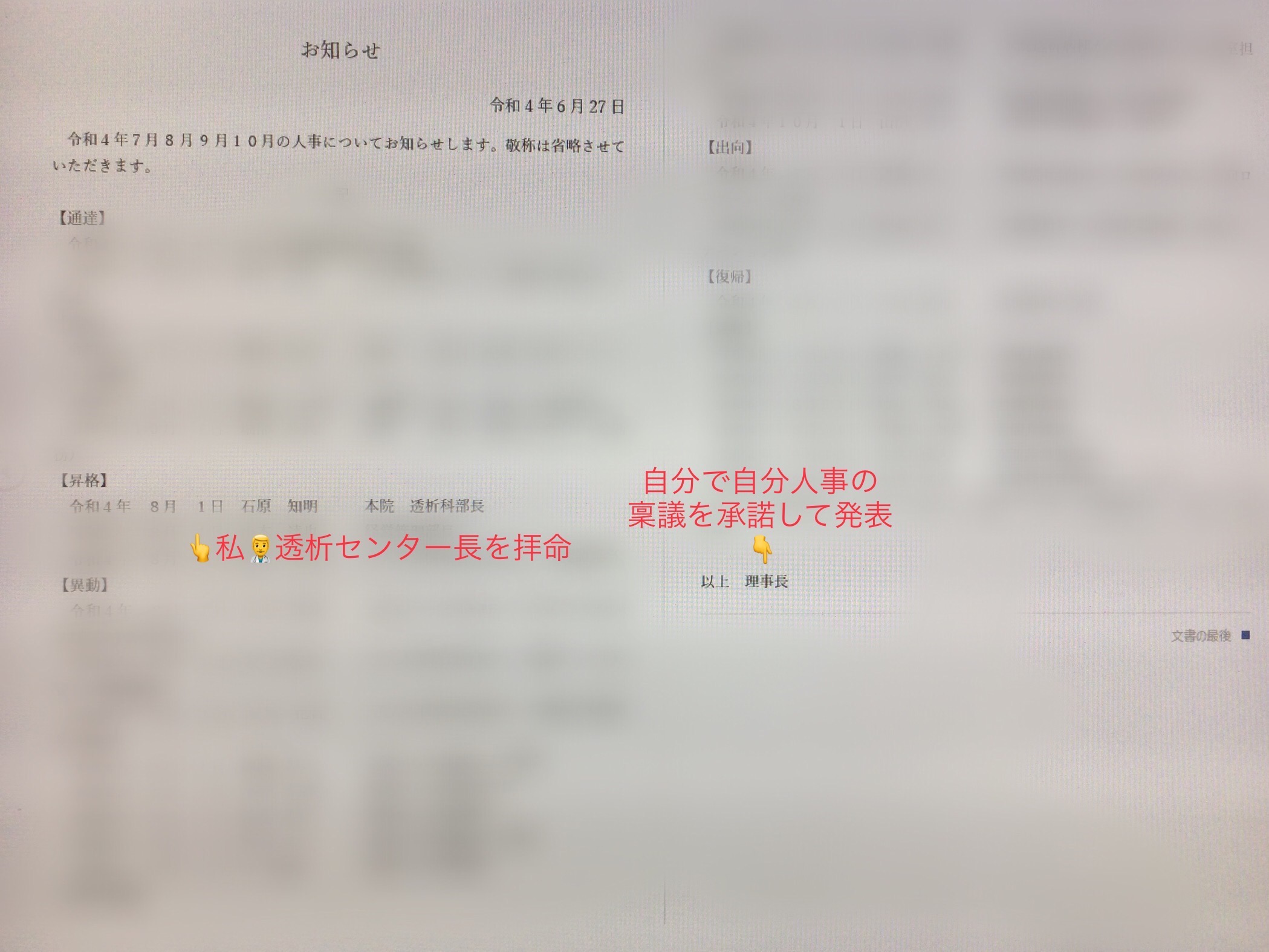 人事異動が発表になりました。