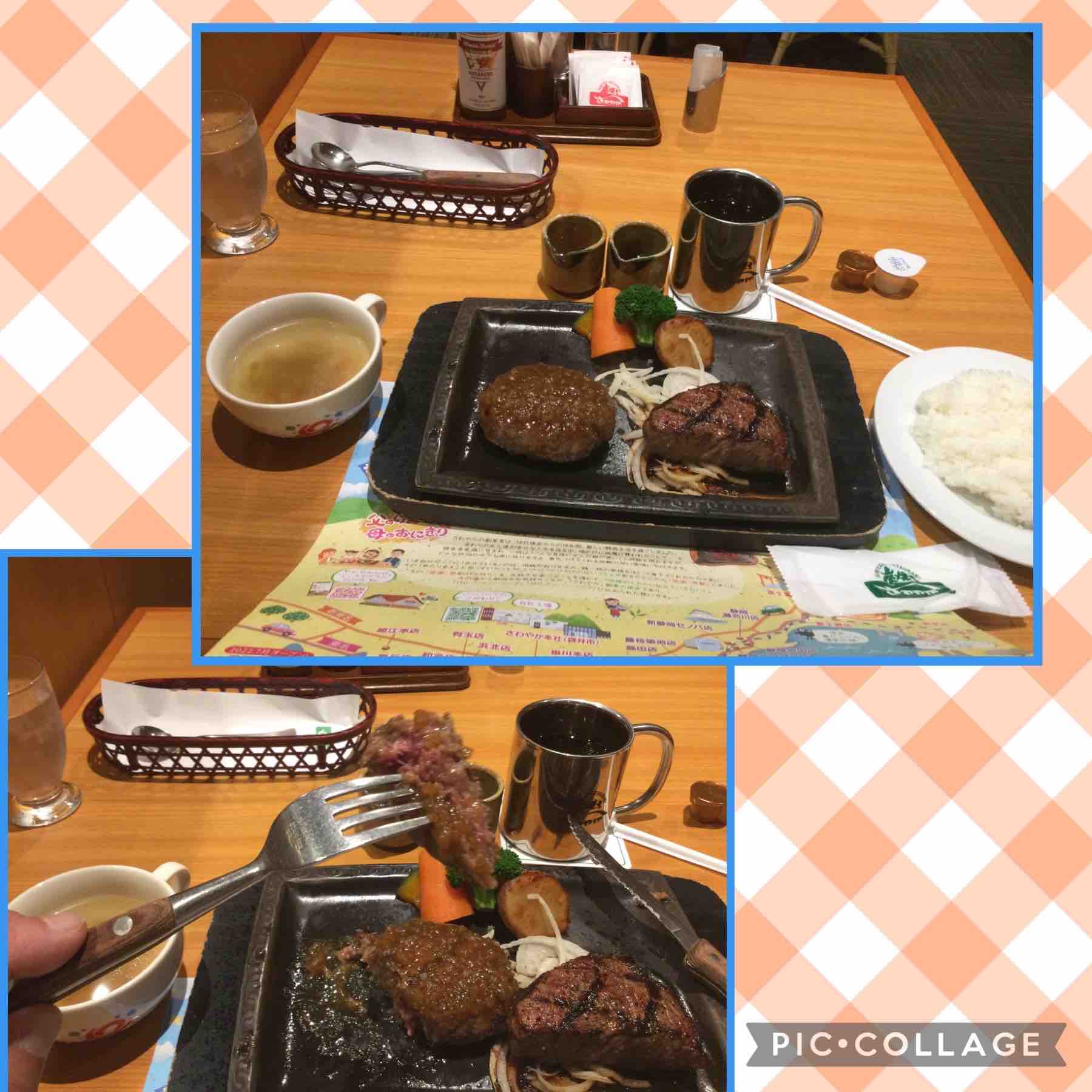 炭焼きハンバーグとステーキ🥩のコンビ