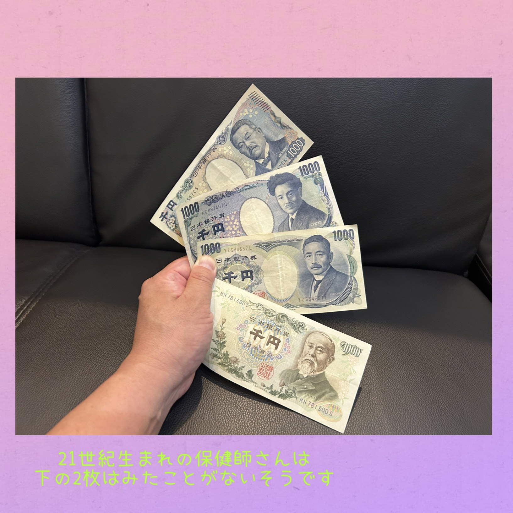 保健師さん『みたことないです。夏目漱石?いつの?』