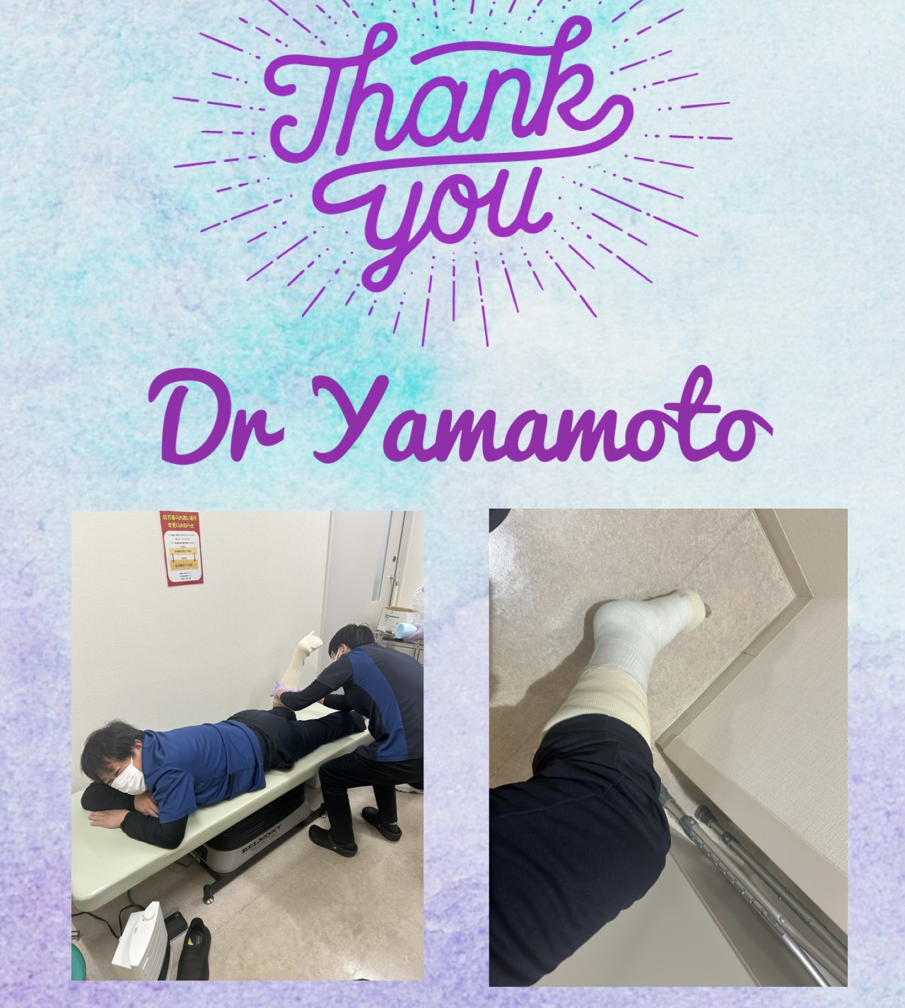 早速、山本医師にギプスを巻いてもらいました。
