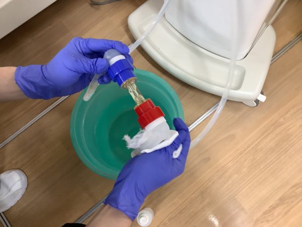 透析液には糖も含まれるので清掃をしないと接続部がカチカチになって動かなくなってしまいます。