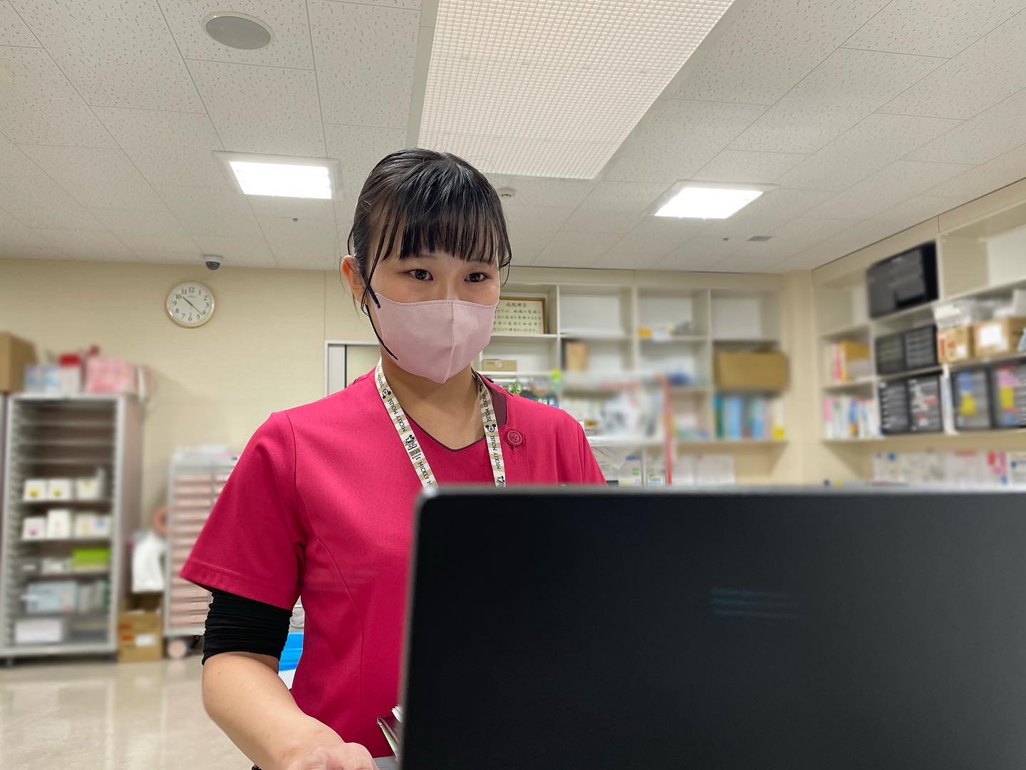 病院のスクラブは職種によって鮮やかな色分けがあります✨看護師はピンクです🎀ビビットなピンクがとってもかわちいです🥰