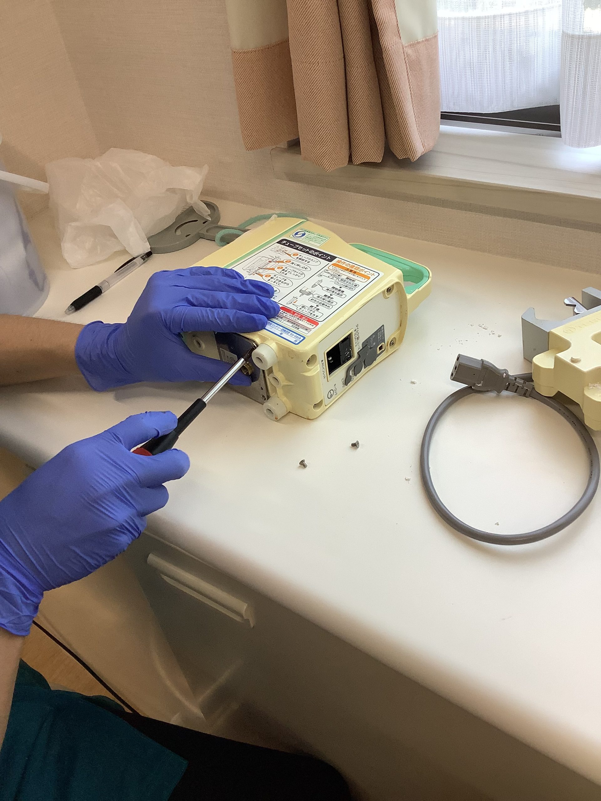 本日は輸液ポンプの点検をされているスタッフの様子を納めました。