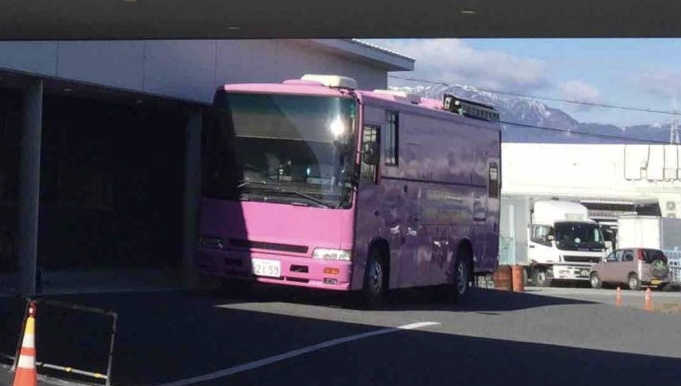 ピンク色のバスは胃の検査や肺の検査ができるバスです。なのでこのバスはかなり重いバスになります。