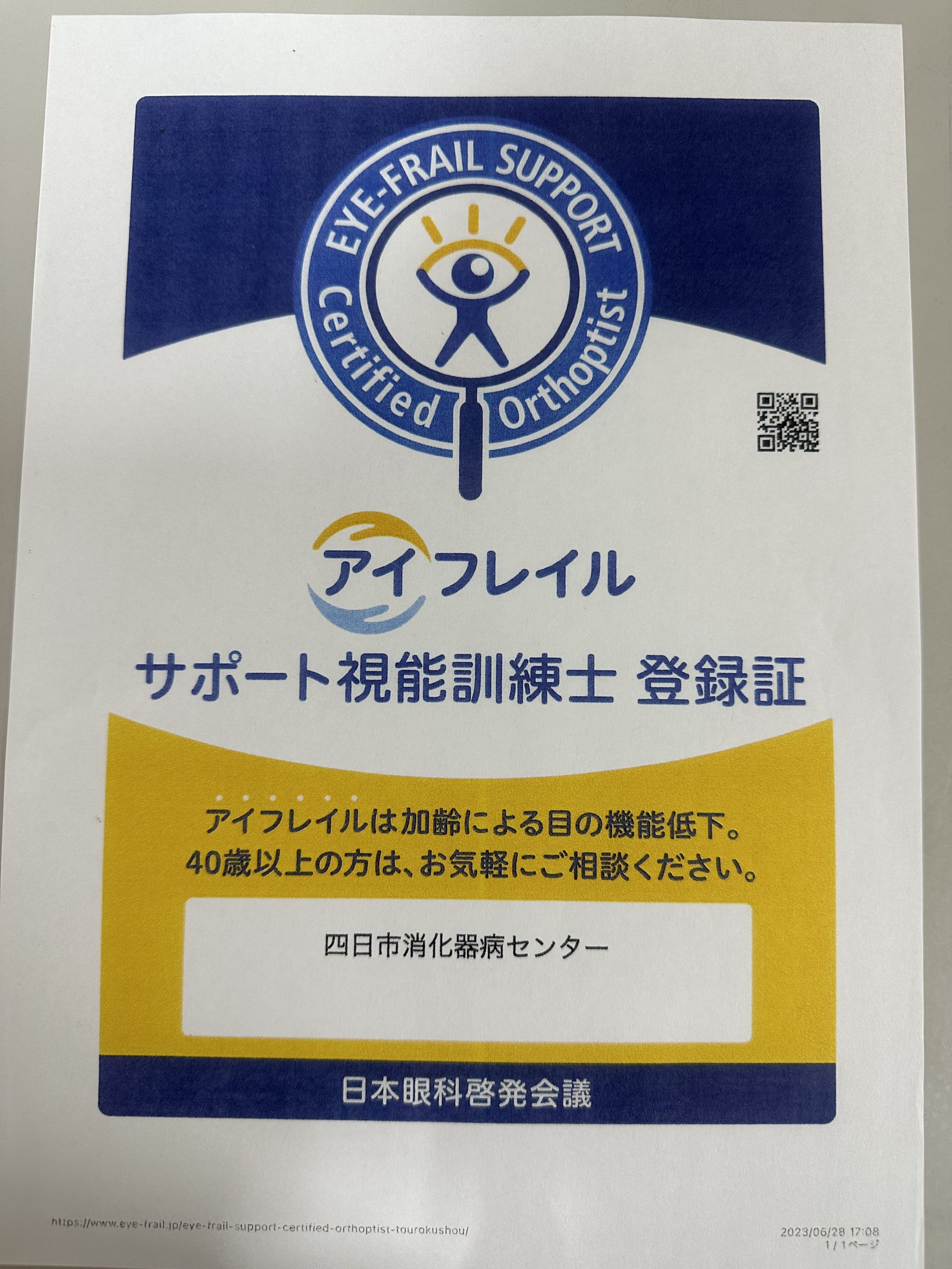 #視能訓練士 #四日市消化器病センター #アイフレイル