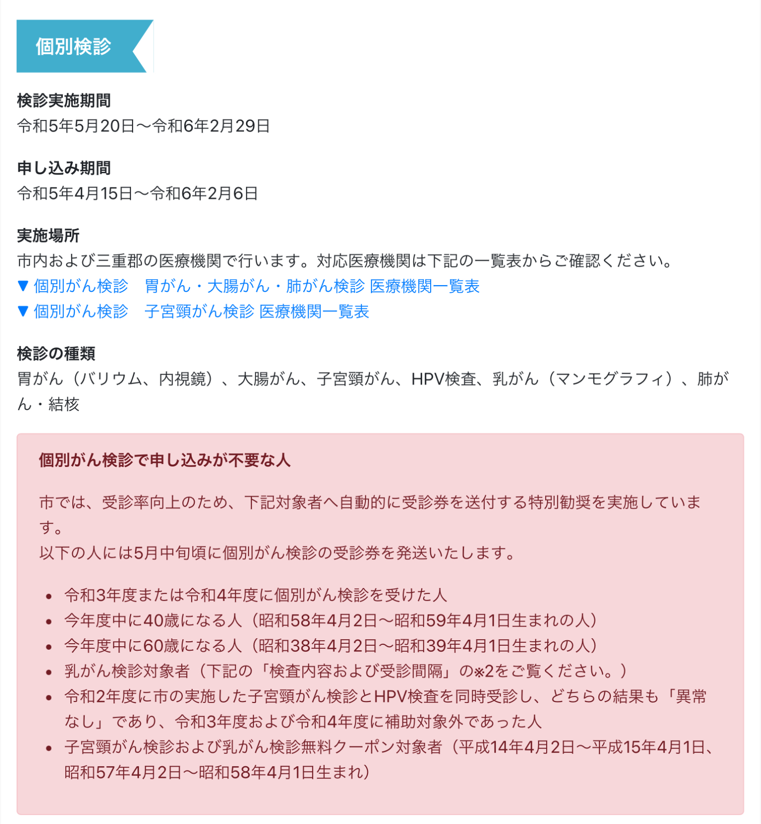 令和5年度四日市市がん検診についてお知らせ致します。