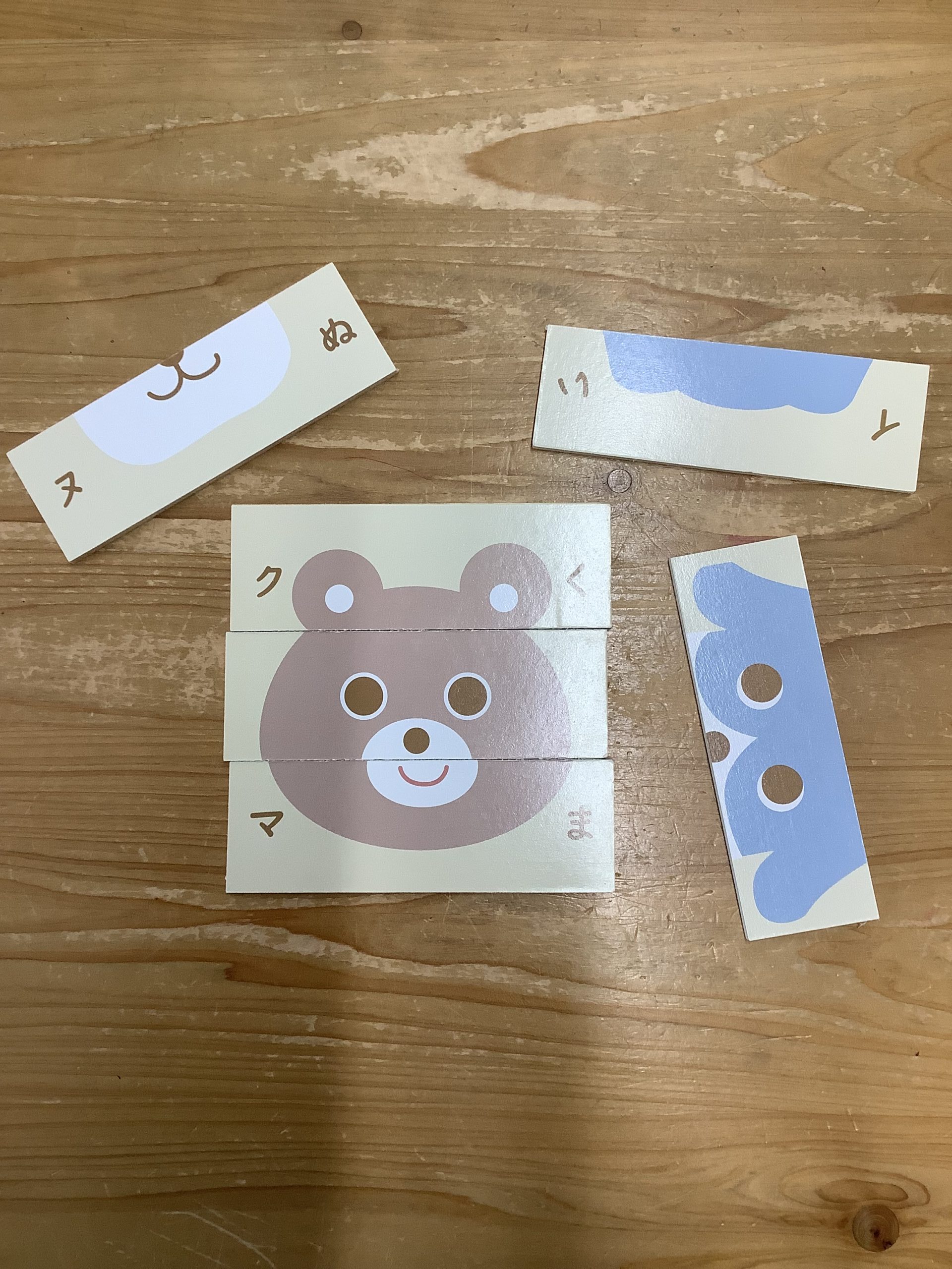 向きを合わせて一つの絵が完成するもので、絵を見る力や指先を使う練習にもなります。